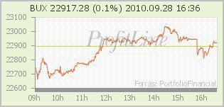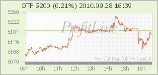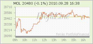 A Mol 20 forinttal, 0,10 százalékkal 20.480 forintra csökkent, 3,6 milliárd forintos forgalomban. Az OTP részvények ára 11 forinttal, 0,21 százalékkal 5.200 forintra erősödött, forgalmuk 12,7 milliárd forintot tett ki. A Magyar Telekom árfolyama 2 forinttal, 0,30 százalékkal 668 forintra esett, forgalma 630,3 millió forint volt.