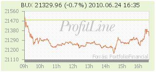 A részvénypiac forgalma 13,5 milliárd forint volt csütörtökön, a vezető részvények a Richter kivételével gyengültek az előző napi záráshoz képest. A csütörtöki kisebb eladói hullámnak, így a BUX gyengülésének oka egyrészt a forint - érdemi hírek nélküli - gyengülése, másrészt az Egyesült Államokból az utóbbi napokban érkező kedvezőtlen makroadatok. A nyugat-európai piacokon is negatív hangulat kerekedett felül, miután rekord magasságba ugrott a görög államadósság-törlesztési kockázat biztosítására kínált hitelpiaci származékos csereügyletek (credit default swaps, CDS) árazása, és a dél-európai országok törlesztésbiztosítási díjai is emelkedtek.