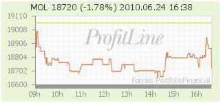 A Mol 340 forinttal, 1,78 százalékkal 18.720 forintra csökkent, 824,7 millió forintos forgalomban.
