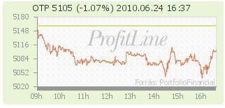 Nem kedvez a magyar piacnak az sem, hogy továbbra sem ismertek konkrét részletek a Magyarországon tervezett bankadóról. Amennyiben az OTP papírok árfolyama letöri az 5000-5040 forintos szintet, úgy ismét komolyabb eladói nyomás nehezedhet az egész magyar piacra. Az OTP részvények ára 55 forinttal, 1,07 százalékkal 5.105 forintra esett, forgalmuk 11,4 milliárd forintot tett ki.