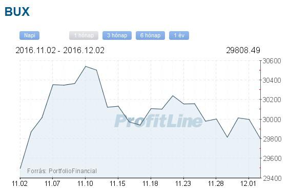 A Budapesti Értéktőzsde részvényindexe, a BUX 189,70 pontos, 0,63 százalékos csökkenéssel, 29 808,49 ponton zárt pénteken, a részvénypiac forgalma 7,2 milliárd forint volt. A Mol 185 forinttal, 0,99 százalékkal, 18 425 forintra csökkent, 1,3 milliárd forintos forgalomban. Az OTP-részvények ára 32 forinttal, 0,40 százalékkal, 7929 forintra esett, forgalmuk 2,7 milliárd forintot tett ki. A Magyar Telekom árfolyama 4 forinttal, 0,82 százalékkal, 484 forintra gyengült, forgalma 406,2 millió forint volt. A Richter-papírok árfolyama 34 forinttal, 0,58 százalékkal, 5810 forintra csökkent, a részvények forgalma 2,7 milliárd forintot ért el.