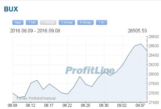 A Budapesti Értéktőzsde részvényindexe, a BUX 137,31 pontos, 0,48 százalékos csökkenéssel, 28 505,53 ponton zárt csütörtökön. A részvénypiac forgalma 8,1 milliárd forint volt. A nagy papírok közül a Mol volt a legnagyobb vesztes, árfolyama 220 forinttal, 1,26 százalékkal 17 255 forintra csökkent, 1,5 milliárd forintos forgalomban. Az OTP-részvények ára 20 forinttal, 0,27 százalékkal 7490 forintra esett, forgalmuk 4,1 milliárd forintot tett ki. A Magyar Telekom 4 forinttal, 0,89 százalékkal 451 forintra erősödött, forgalma 584,3 millió forint volt. A Richter 30 forinttal, 0,51 százalékkal 5825 forintra gyengült, forgalma 1,8 milliárd forintot ért el.