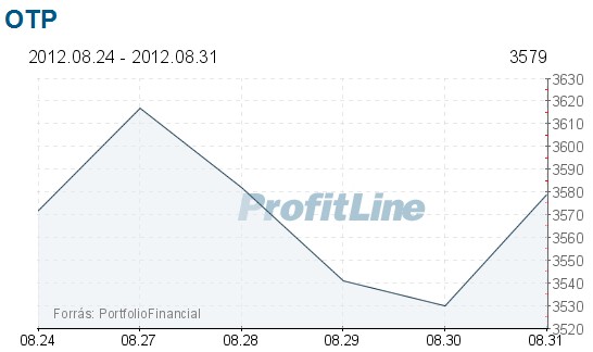 Az OTP 0,2 százalékkal, 7 forintot emelkedett a héten, 3.579 forinton zárt pénteken. A Mol árfolyama 3,23 százalékkal, 520 forinttal, 16.620 forintra emelkedett. A Magyar Telekom 2,83 százalékkal, 12 forinttal erősödött, 426 forint lett a heti záró ára.