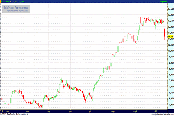 A gyár papírjai másfél hónapos mélypontra, 10,94 euróra süllyedtek a párizsi börzén, ami a legnagyobb napon belüli veszteség az amerikai Lehmann Brothers befektetési bank 2008 őszi bukása óta.