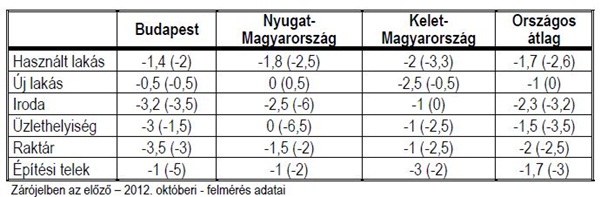 A felmérés résztvevői szerint az üzleti ingatlanok bérleti díjai a következő 12 hónapban várhatóan csak kismértékben, de jellemzően lefelé változhatnak.