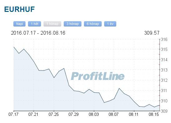 Az eurót a hétfő esti 309,40 forint után kedd reggel nyolc óra előtt 309,43 forinton jegyezték. Hétfőn a forint négyhavi árfolyamcsúcsot ért el az euróval szemben.