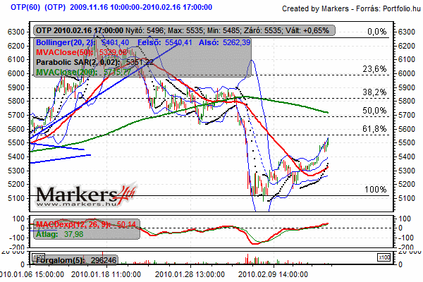 Amíg pedig a forgalmi adatok nem igazolják vissza az emelkedést, addig mindez csalóka lehet. Az igazán komoly megmérettetésre most kerülhet sor 5550 és 5600 forintnál, mely utóbbinál az 50 és 20 napos mozgóátlag is húzódik.