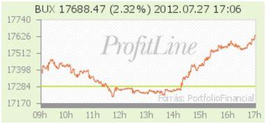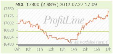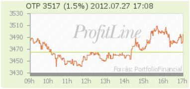 A Mol 500 forinttal, 2,98 százalékkal 17.300 forintra erősödött, 1,9 milliárd forintos forgalomban. Az OTP-részvények ára 52 forinttal, 1,50 százalékkal 3.517 forintra nőtt, forgalmuk 3,5 milliárd forintot tett ki.