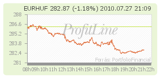 Röviddel 20 óra előtt az euró 282,29 forintra gyengült a reggeli 285,95 forintról.