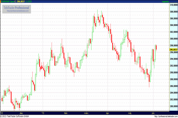 Ma reggel a végleges első negyedéves, az előzetes várakozásoknak megfelelően kedvező adat publikálása után, a kicsit enyhülő piaci hangulatban már az erősödésé a terep, de még mindig 296 fölött járunk. Továbbra is a hangulat, a makró adatok, illetve ma főleg a délutáni EKB ülést követő események határozzák meg az irányt, de ha minden jól alakul, akkor benézhetünk akár a 295-ös szint alá is.