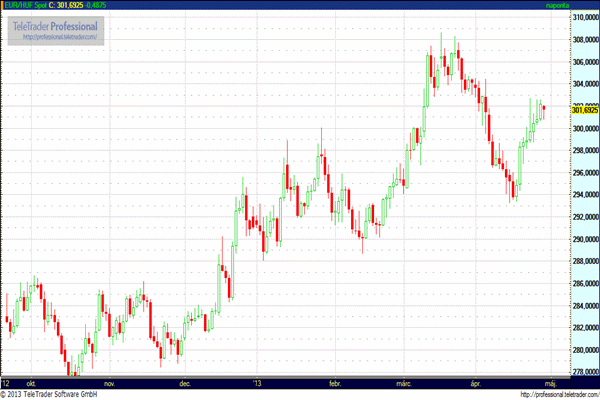 Az EKB nagy valószínűséggel hozzányúl a jelenleg 0,75%-on álló alapkamathoz, a 25 bázispontos vágást immár biztosra veszi a piac. Kérdés, hogy a lépés mennyire tudja majd segíteni a gondokkal küzdő gazdaságokat. Egy ilyen lépéstől nem valószínű, hogy felpörögne a hitelezés, a gond a periféria országokban is inkább a magas munkanélküliség (Spanyolországban 27%!), és az alacsony vásárlóerő. Bár kétségtelen, hogy a német 2-3%-os kamatokkal szemben az ibériai félsziget gazdaságainak 7% körüli kamatot kell kigazdálkodniuk. Nagyobb mozgásokra a fentiek alapján inkább a hét második felében számíthatunk, Draghi elnök úr szavai a múltban okoztak már nagyobb kilengéseket.