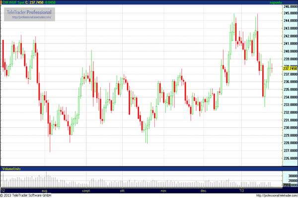 CHF/HUF (236,00 – 240,00): Bár ma reggel ismét az 1,24-es szint fölött járt az árfolyam, de a rossz francia adat miatt csökkenő kockázatvállalás a frankot erősítette az euróval szemben. A forint is szenved, így továbbra is a 237-239-es sáv lehet a jellemző.