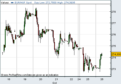 A másik oldalon a kamatemelés lehetőségének megvitatása azt az üzenetet hordozza, hogy amennyiben az inflációs várakozások növekednek (erre az SZJA csökkentés nyomán beinduló fogyasztással van esély) vagy az ország akár külső akár belső kockázati megítélése szignifikánsan romlik, a jegybank kész lépéseket tenni. Mivel a bizonytalansági tényezők fennállnak ez a védekező üzemmód nagyon pozitív a forint számára. A piac nagyobb valószínűséggel számít kamatemelésre mint vágásra, ami szintén erősítheti az árfolyamot, és ez relatív erősödésként már megfigyelhető: úgy tartjuk a 273-274 centrumban az oldalazást, hogy közben az EURUSD 1,4050-ről 1,3950-re erősödött. Mai napra sem várható óriási mozgás, kedvező amerikai adatok esetén kisebb mértékű gyengülés elképzelhető.