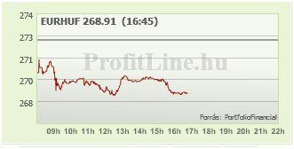 Az eurót hétfőn délután háromnegyed ötkor 268,91 forinton jegyezték a délelőtt negyed tizenegykor tartott 269,83 forint és a múlt csütörtök délutáni, 2009. december 31-i 270,24 forint után. A dollár jegyzése 186,67 forint 1,4406 dolláros euró árfolyam mellett, szemben a december 31. délutáni 187,72 forinttal és 1,4412 euró/dollár árfolyammal.