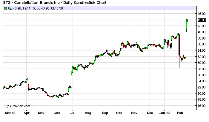 A Constellation Brands Inc szeszesitalok gyártásával és ezek forgalmazásával foglalkozik. Főként az Egyesült Államokban, de nemzetközi szinteken is olyan ismert termékeket tudhat magáénak, mint például a Corona, Corona Light és a Black Welvet. A vállalat részvényei a tegnapi napon már piacnyitás előtt felfelé vették az irányt.