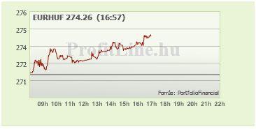 Csütörtökön nap közben 275 forint közelében is járt a jegyzés, majd erősödésnek indult a forint nemzetközi piacon bekövetkezett hangulatváltásnak köszönhetően, amit a vártnál jobb harmadik negyedéves amerikai GDP-adat váltott ki.