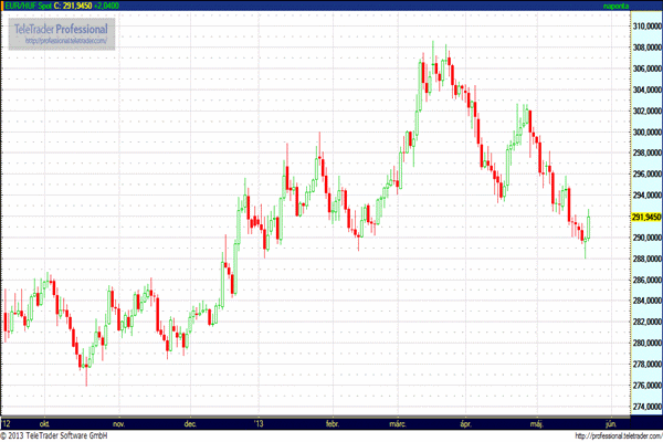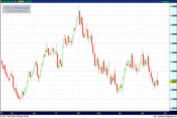 EUR/USD (1,2810 – 1,2950): Bernanke a QE program jövőjével kapcsolatos szavai rég nem látott volatilitást hoztak a piacra. A meghallgatás első részében még a kilábalás törékenységéről beszélt, illetve arról, hogy veszélyes lenne a gazdaság kilátásait tekintve, ha hirtelen csökkentenék a program összegét vagy esetleg lezárnák azt. Ez kijelentés a dollár gyengülését hozta az addig 1,2940-es szintről egészen 1,30-ig. A meghallgatás későbbi részében, egy kérdésre válaszolva, miszerint hogyan is nézne ki a program összegének csökkentése, már az időhorizont is említésre került. Bernanke jelezte, ha továbbra is jó adatok érkeznek, és ezek a kilábalás fenntarthatóságát mutatják, akkor akár már a következő FED üléseken is tehetnek lépéseket a program összegének nagyságával kapcsolatban. Ez akár azt is jelentheti, hogy már a nyár folyamán csökkenhet a pénzpumpa sebessége.