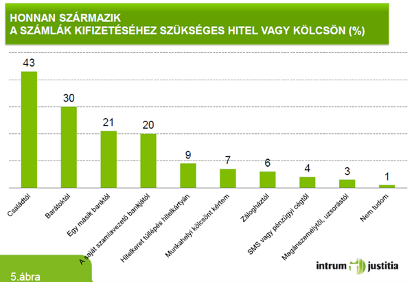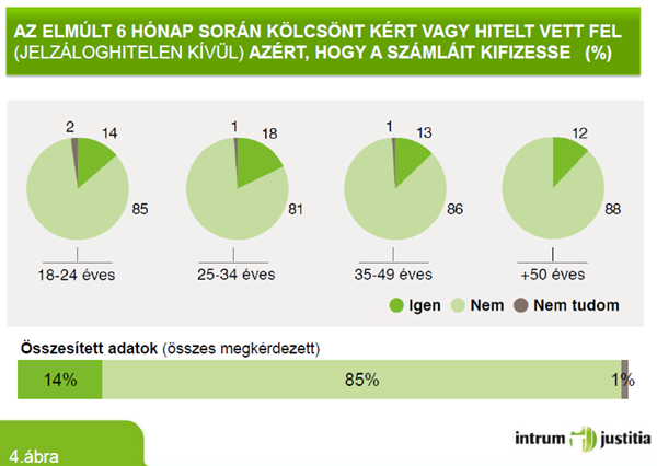 A kutatás kitért arra is, hogy a megkérdezettek milyen stratégiát alkalmaznak a fizetési nehézségek megoldására: 14%-uk nyilatkozott úgy, hogy az elmúlt 6 hónap során számláik kifizetéséhez kölcsönt kértek vagy hitelt vettel fel. Többségük elsősorban a családhoz, barátokhoz fordul segítségért, és csak másodsorban igényelnek hitelt pénzintézetektől.