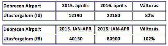 Tamás László, a Debrecen Airport járatfejlesztési igazgatója a 2016-os áprilisi és az első harmadéves eredményeket örömmel summázta: “A Debrecen Airport utasforgalmának dinamikus növekedése áprilisban is folytatódott.