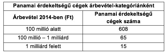 A panamai érdekeltségű cégek között vegyesen találhatóak kicsik és nagyok, és 15 olyan is akad, amelynek éves árbevétele meghaladja az egymilliárd forintot.