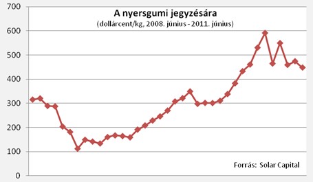 A gumi ára a kereslet erőteljes növekedésének köszönhetően az árutőzsdén felfelé indult, ám a kereslet és a kínálat egyensúlytalansága várhatóan újabb csúcsokra röpíti az értékét az idei évben. A jegyzésár az elmúlt három évben jelentős mozgásokat produkált. Míg 2008 derekán még 300 dollárcent körül mozgott, egy évvel később már csak 100 dollárcent volt. Az idei év elején pedig valamivel 600 dollárcent alatt tetőzött.
