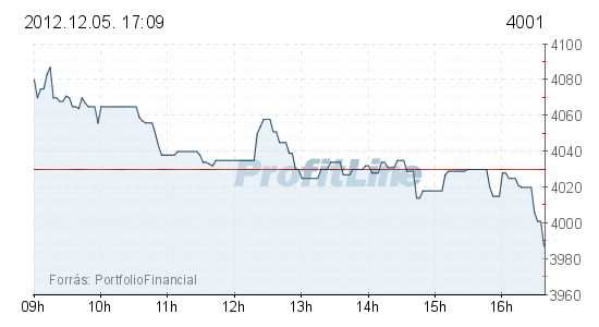Az OTP részvények ára 29 forinttal, 0,72 százalékkal 4001 forintra csökkent, forgalmuk 2,0 milliárd forintot tett ki. A Magyar Telekom árfolyama 5 forinttal, 1,29 százalékkal 382 forintra esett, forgalma 730 millió forint volt. A Richter papírok árfolyama 520 forinttal, 1,44 százalékkal 35 700 forintra csökkent, a részvények forgalma 2,1 milliárd forintot ért el. A másik gyógyszeripari részvény, az Egis 26,1 millió forintos forgalom mellett 135 forinttal, 0,79 százalékkal 16 920 forintra gyengült.