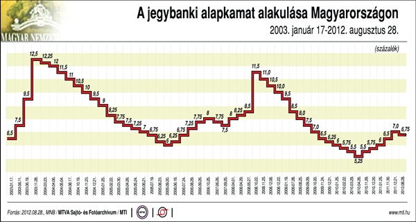 Hozzátették azonban, hogy mivel "viszonylag konstruktívan" ítélik meg az IMF/EU-tárgyalások várható kimenetelét, arra számítanak, hogy az MNB-alapkamat a jelenlegi 6,75 százalékról az idei év végére 6,00 százalékig csökken. A Bank of America-Merrill Lynch jelenleg érvényes távlati előrejelzése az, hogy a magyar jegybanki kamatszint 2013 második negyedévére 5,00 százalékig süllyed tovább.