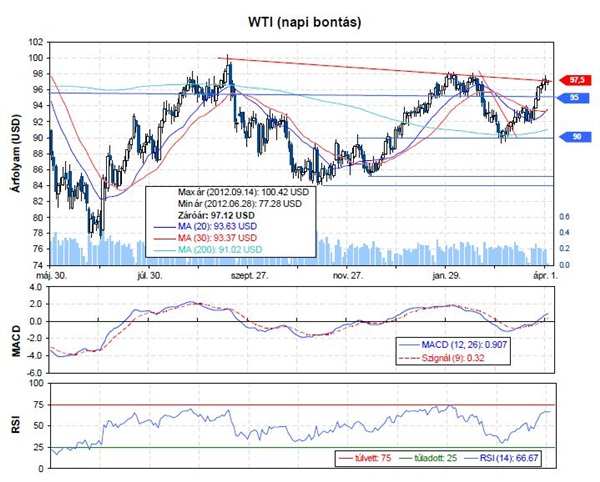 Március közepén megfogalmazott olaj vételi javaslatunk elérte a kiszállási pontként meghatározott 97,5 dolláros árfolyamot, ami a 91,46 dolláros belépési ponttól számítva 6,6%-os nyereséget jelent három hét leforgása alatt - olvasható az Erste elemzésében.