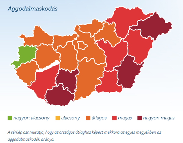 Az eredményekből jól látszik, hogy a Vas megyében élők esetében mérhető a legalacsonyabb mértékű aggodalmaskodás, amit a szakértő szerint a terület gazdasági fejlettsége, a magasabb életszínvonal, illetve a nyugati világhoz való közelség magyarázhat.