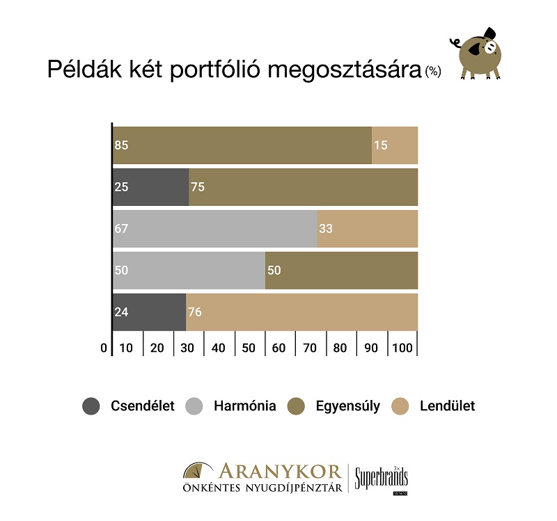 A jogszabályi környezet 2016-ban teremtette meg a lehetőséget a befektetés két portfólióban történő megosztására. A negyven szereplős önkéntes nyugdíjpénztári piacon a 10 százalékos piaci részesedésű Aranykor fejlesztette ki és biztosítja elsőként és jelenleg egyedüliként ezt a lehetőséget.