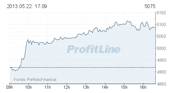 A külföldi piacokon mindenki Ben Bernanke Fed-elnök beszédét várta. Egyelőre nincs konkrétum, továbbra is fenntartják a monetáris lazítási programot, bár már gondolkodnak azon, hogy milyen úton-módon lehetne esetleg csökkenteni a mennyiséget. A piac ezt egyelőre jól fogadta: először nagyon pozitív volt a hatás, majd az 1 százalékos pluszokból fél százalék "visszajött", de még mindig jó a hangulat.
