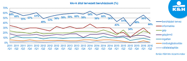 Továbbra sem lehet nagy beruházási dömpingre számítani a hazai vállalkozások körében. A K&H kkv bizalmi index kutatás legutóbbi adata szerint a tavaly elindult javulást követően újra alábbhagyott a cégek beruházási hajlandósága. „A következő egy év során a vállalkozások kevesebb mint fele, csupán 44%-uk tervez valamilyen fejlesztést, ami jelentős, 12 százalékpontos visszaesés az előző negyedévhez képest. A visszaesés hátterében feltehetően az áll, hogy a kkv-szektort célzó EU pályázatok beindulása továbbra is várat magára.