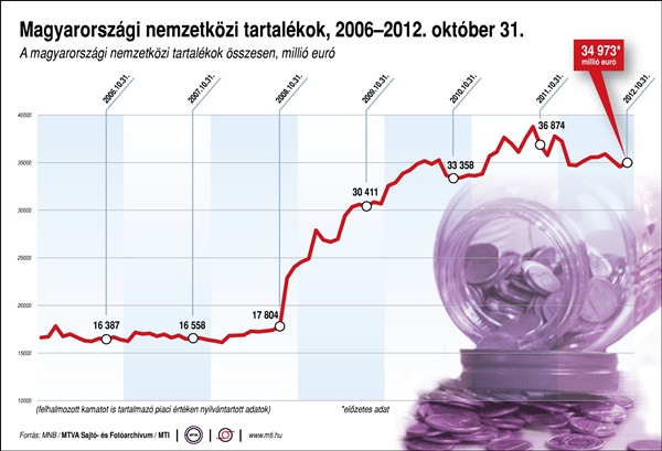 Az előző hónapban, szeptemberben a tartalékok 661 millió euróval csökkentek. A tartalékok az idén március óta először augusztusban csökkentek, akkor a szeptemberivel megegyezően 661 millió euróval.