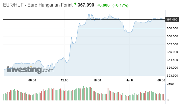 Az euró 357,19 forinton állt 6 órakor a szerda esti 357,14 forint után.