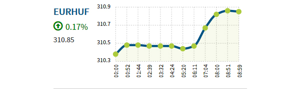 Az eurót 7 óra tájban 310,66 forinton jegyezték a hétfő esti 310,93 forinttal szemben. A dollár 262,56 forintról 262,03 forintra, a svájci frank pedig 271,58 forintról 271,07 forintra gyengült.