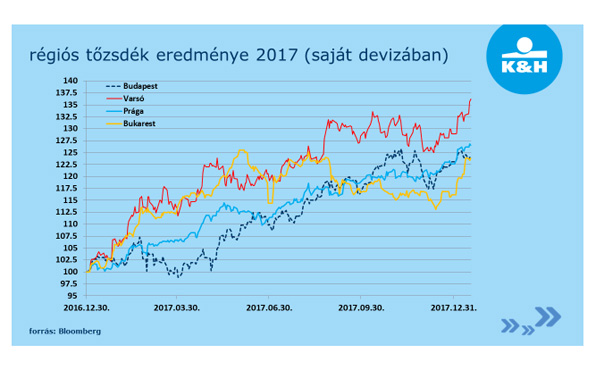 „A régiós országok gazdasági teljesítménye kiválóan alakult 2017-ben, és a várakozások szerint ez a növekedési ütem az idei évben is megmaradhat. Az európai konjunktúra beindulása mellett a belső fogyasztás erősödése is tovább húzhatja felfelé a régiós országok teljesítményét, ami egyértelműen jó hír a vállalati szektornak. Az egyre dráguló munkaerő miatt azonban már nem várható a profitszintek „felrobbanása”, jelenleg inkább egyszámjegyű eredménybővülés várható” – tájékoztatott Hajósi Péter, a K&H Alapkezelő befektetési igazgatója.
