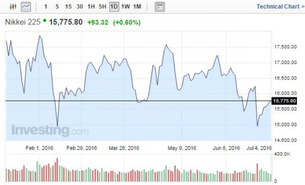 Tokióban a 225 válogatott részvény Nikkei mutatója 0,60 százalékkal, 15 775,80 pontra emelkedett, míg a szélesebb körű Topix-index szintén 0,60 százalékkal, 1261,97 pontra nőtt. A Nikkei már a hatodik egymást követő napon emelkedett.