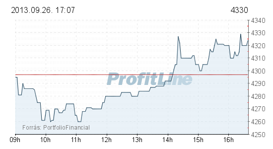 A Mol 155 forinttal, 0,97 százalékkal 16 060 forintra erősödött, 615,1 millió forintos forgalomban. Az OTP-részvények ára 33 forinttal, 0,77 százalékkal 4330 forintra nőtt, forgalmuk 2,9 milliárd forintot tett ki.