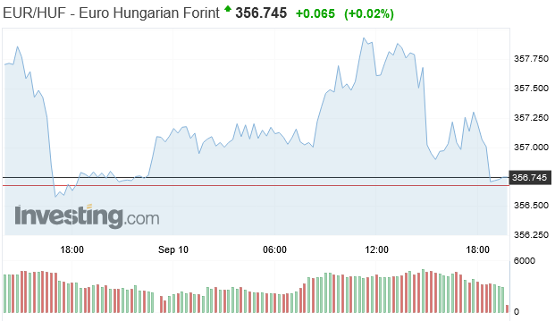 Az eurót a kora reggeli 357,11 forinttal szinte megegyező árfolyamon jegyezték este fél hétkor, 357,12 forinton. Hasonlóképpen csekély mértékben változott estére a svájci frank jegyzése is, a kora reggeli 331,38 forint után 331,32 forinton állt.