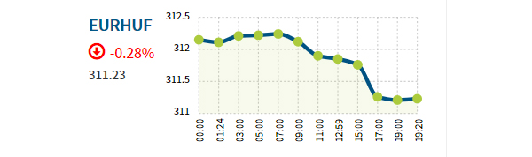 Az euró jegyzése este hét órára 311,20 forintra csökkent a kora reggeli 312,22 forintról. Az eurót legutóbb november végén jegyezték 312 forint alatt.