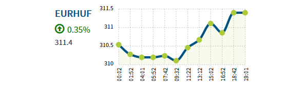 Az eurót 18.30 óra tájban 311,36 forinton jegyezték a kora reggeli 310,22 forinttal szemben. A dollár 267,10 forintról 267,66 forintra, a svájci frank pedig 267,54 forintról 269,00 forintra erősödött.