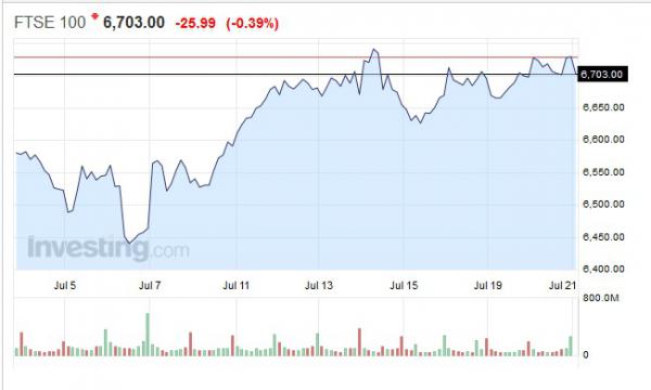 Az olaj drágult. Az amerikai olajkészletek a július 15-ével végződött héten 2,3 millió hordóval csökkentek, de ennek árfelhajtó hatását gyengítette a benzinkészletek meglepetésszerű 911 ezer hordós emelkedése. Az olajkészletek továbbra is történelmileg magas szinten állnak, elérik az 519,5 millió hordót.