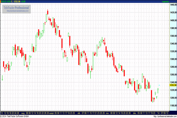 A tavalyi évben mutatott 28 százalékos esés után lendületes emelkedéssel kezdi az évet az arany árfolyama. A 2013-ban mutatott eséssel 12 éves nyerő széria szakadt meg. Tegnap az év első kereskedési napján ugyanakkor a februári szállítású arany jegyzése közel 23 dollárral, 1,9 százalékkal erősödött unciánként.