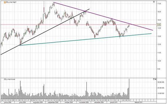 A tegnapi kereskedés során a Dell computers részvényei 2,3%-os emelkedésen ment keresztül miután publikálásra került mely a várakozásokat meghaladta, azonban a jövőbeli várakozások az értékesítésekkel kapcsolatban nem tűnnek túl fényesnek.