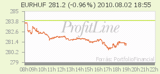 A forint a múlt hét második felében már a 283 forintos eurójegyzés környezetében stagnált, egy-két forintos sávon belül ingadozva, pénteken azonban az ingadozási sáv eltolódott a 285 forint környezetébe.