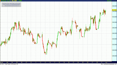 Kora reggel az euró 303,01 forintos középárfolyamon kezdett, dél felé 304,73 forintnál tartott, estére 304,50 forintra csúszott vissza, de a napközi csúcsa 305,24 forint volt. A forint történelmi mélypontja 2009. március 6-án volt, aznap az euró 317,59 forintot ért.