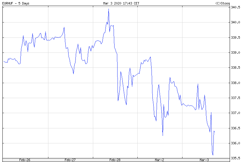 „Reggel még 337 és 338 forint között volt az euró, az amerikai kamatvágás után hirtelen 336,50 forintra csökkent az euró jegyzése, majd később még lejjebb ment, magyar idő szerint 5 óra után 335,20-335,40 forintba került. A forinttal párhuzamosan a régiós devizák, a lengyel zloty és a cseh korona is erőre kapott” – mondta a K&H szakembere.