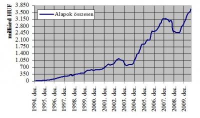 Ismét csökkent a kötvényalapok vagyona: a 27 alap 2,3 százalékos vagyonvesztést könyvelhetett el. Ennek oka részben továbbra is az év elején sikerterméknek számító rövid kötvényalapok tőkevonzásának elapadása, részben az újabb negatív hónap a hosszabb lejáratú hazai kötvények piacán. Ezekből a termékekből így összesen 7,6 milliárd forint tőkét vontak ki a befektetők, bár mintegy 440 millió forint hozamot termeltek. A rövid kötvényalapok esetében 4,1 százalékkal csökkent a vagyon, aminek oka 7,3 milliárd forint tőkekivonás volt, míg mintegy 570 millió forint hozamot értek el. A hosszú kötvényalapok vagyona 0,3 százalékkal csökkent, miután közel 300 millió forint távozott ezekből a termékekből, és 130 millió forintos veszteséget is elkönyvelhettek. A kötvényalapok összvagyona a hónap végén 299 milliárd forint volt.