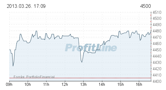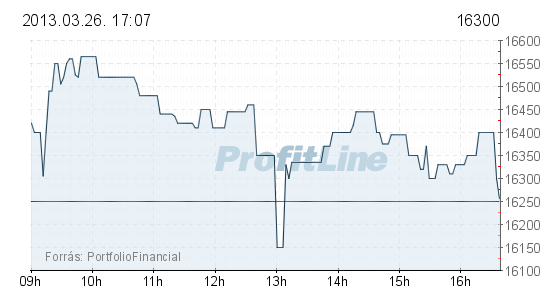 A Mol 50 forinttal, 0,31 százalékkal 16 300 forintra erősödött, 1,4 milliárd forintos forgalomban. Az OTP-részvények ára 95 forinttal, 2,16 százalékkal 4500 forintra nőtt, forgalmuk 4,4 milliárd forintot tett ki. A Magyar Telekom árfolyama 1 forinttal, 0,24 százalékkal 408 forintra csökkent, forgalma 839,9 millió forint volt. A Richter-papírok árfolyama 60 forinttal, 0,18 százalékkal 33 350 forintra esett, a részvények forgalma 983,4 millió forintot ért el. A másik gyógyszeripari részvény, az Egis 164,8 millió forintos forgalom mellett 35 forinttal, 0,19 százalékkal 18 565 forintra gyengült.