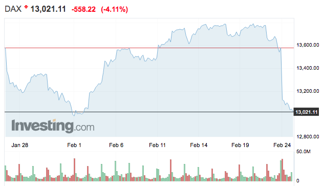 A német DAX index 5 óra előtt 4% fölötti mínuszban